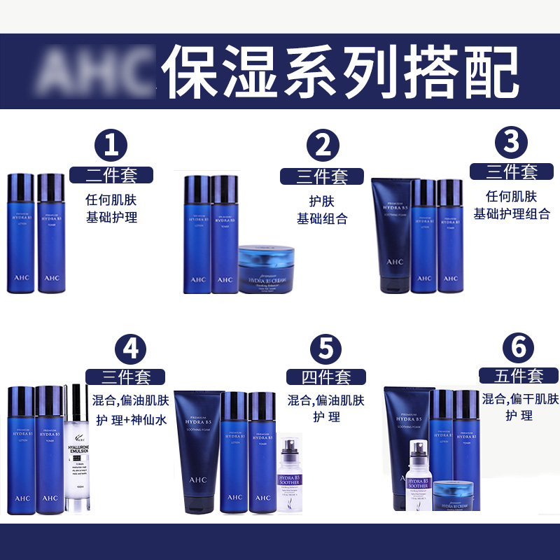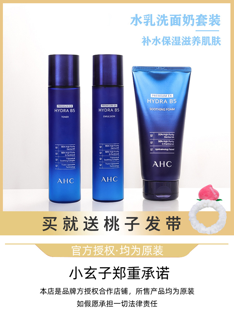 Korea AHC water lotion set B5 hyaluronic acid moisturizing moisturizing blue bobo official facial cleanser lotion for women and men