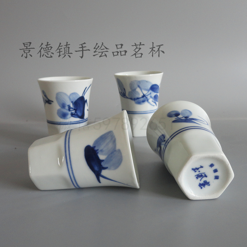 Jingdezhen Yufeng Kiln 80s Old factory Qing flower hand-painted high-foot hexagonal jade blue cup tea tea tea tea tea tea