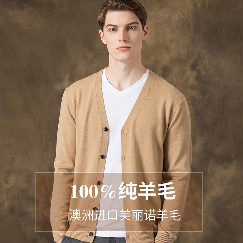 Sheep sweatshirt sweatshirt for men's spring and autumn outside wearing pure color V collar middle-aged sweater knit cardio-weaters thick and autumn winter coat large size