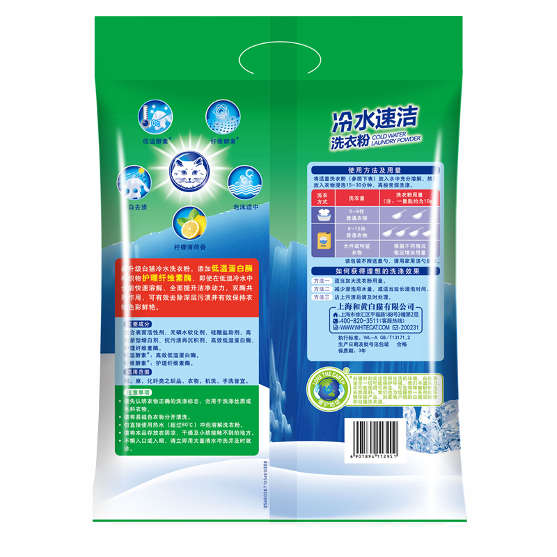 White cat washing powder Cold water quick clean household phosphorus-free bright white stain removal family pack 2 5kg wholesale large package