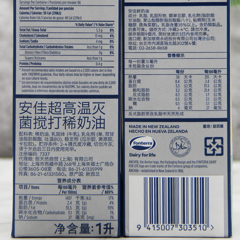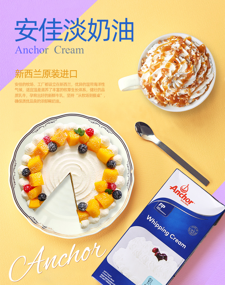 Anjia whipped cream 1L imported animal whipped cream egg tart birthday cake baking home decoration cream