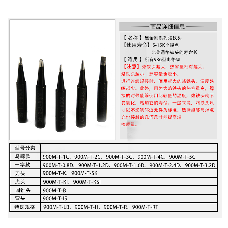 Original fit 936 branded iron head knife edge shaped lead-free solder mouth small knife head pointed horseshoe 900M-T-K black diamond welding head-Taobao
