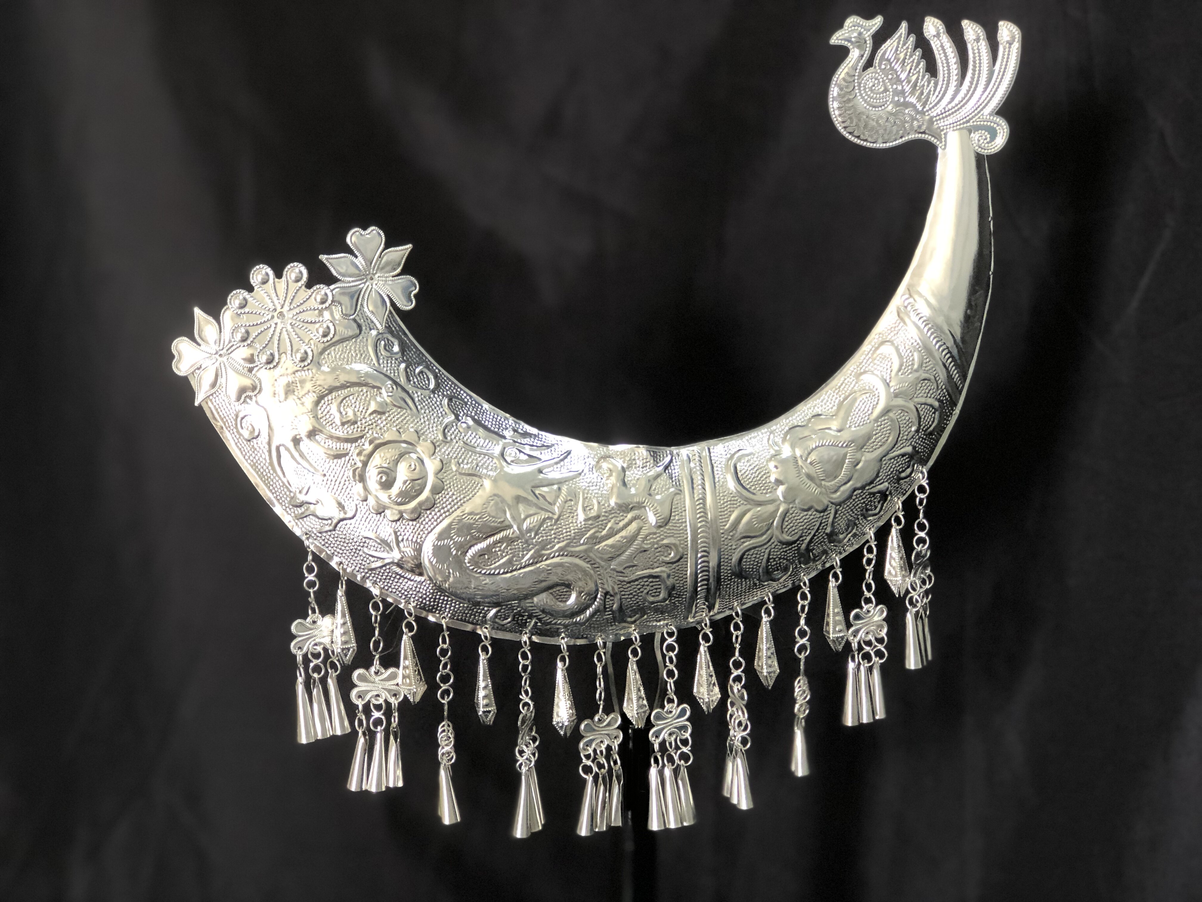 Aying Miao Arts Colorful Guizhou Ethnic Featured Silver Accessories Costumes Horn Performance Headwear