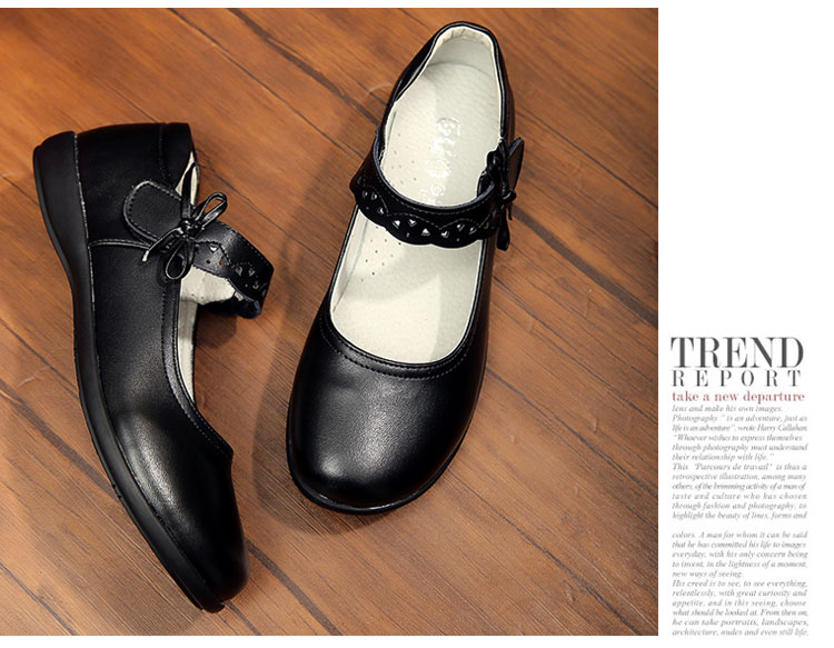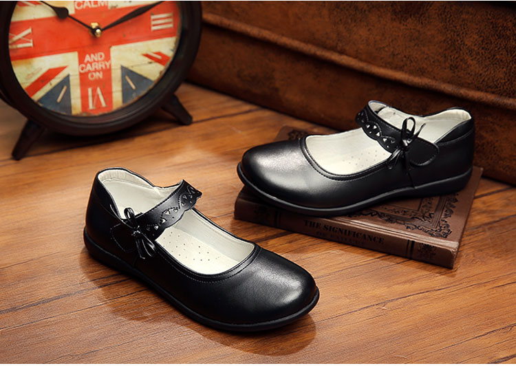 Shenzhen students unified girls black leather leather shoes performance shoes flat bottom children round toe princess single shoe bow