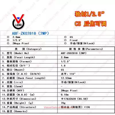 Metallurgical high temperature lens V02818 CS 1 2 5quot original back focus manual lock Fujian Chengan Digital