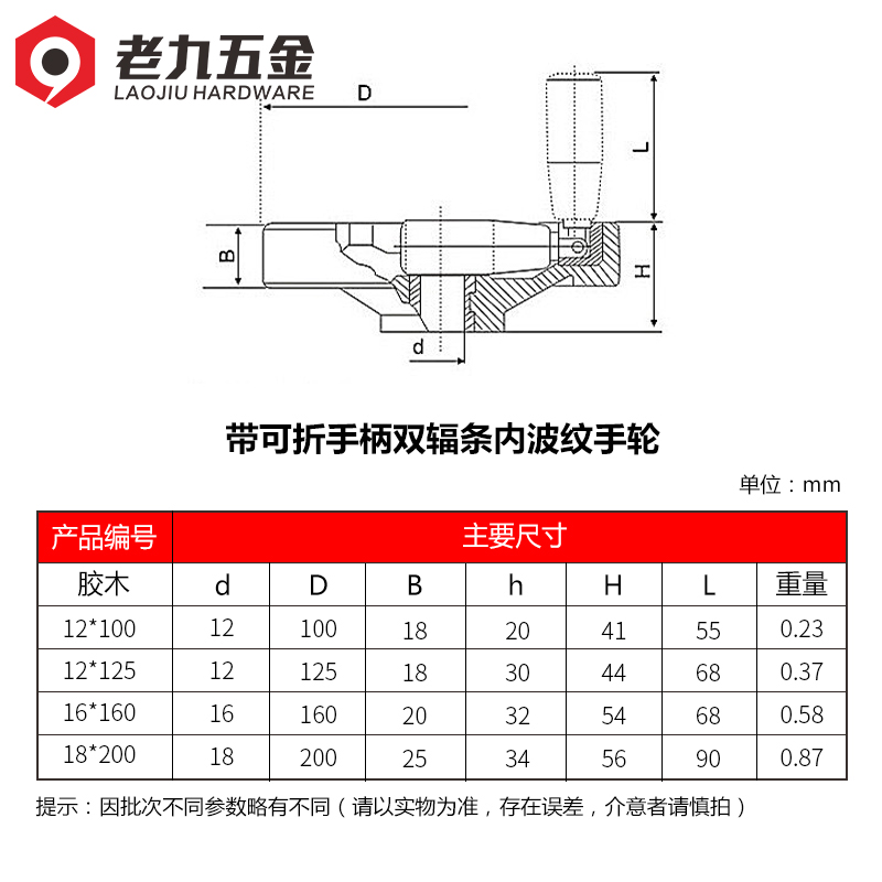 Gumwood inner corrugated hand wheel machine tool full amplitude hand wheel aluminum alloy folding lathe to turn handwheel handle accessories