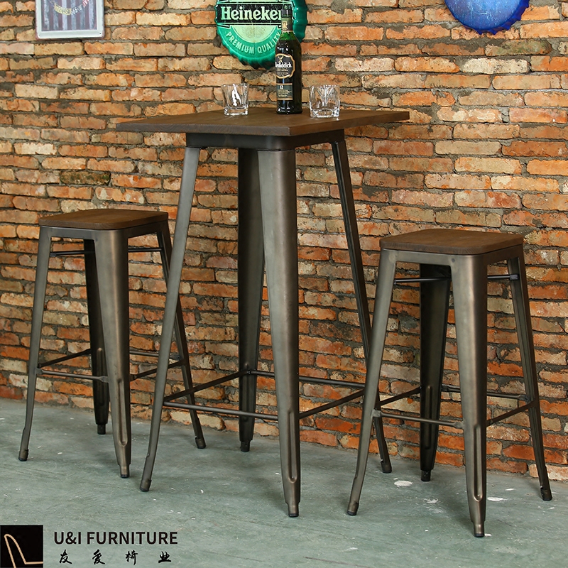 Metal industrial style bar table home high steel frame solid wood elm old can be customized size bar