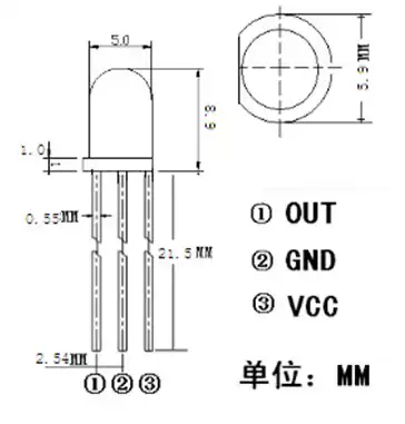 5mm round head infrared receiving head 0038M F5 round infrared receiving remote control signal head 38kHz receiver