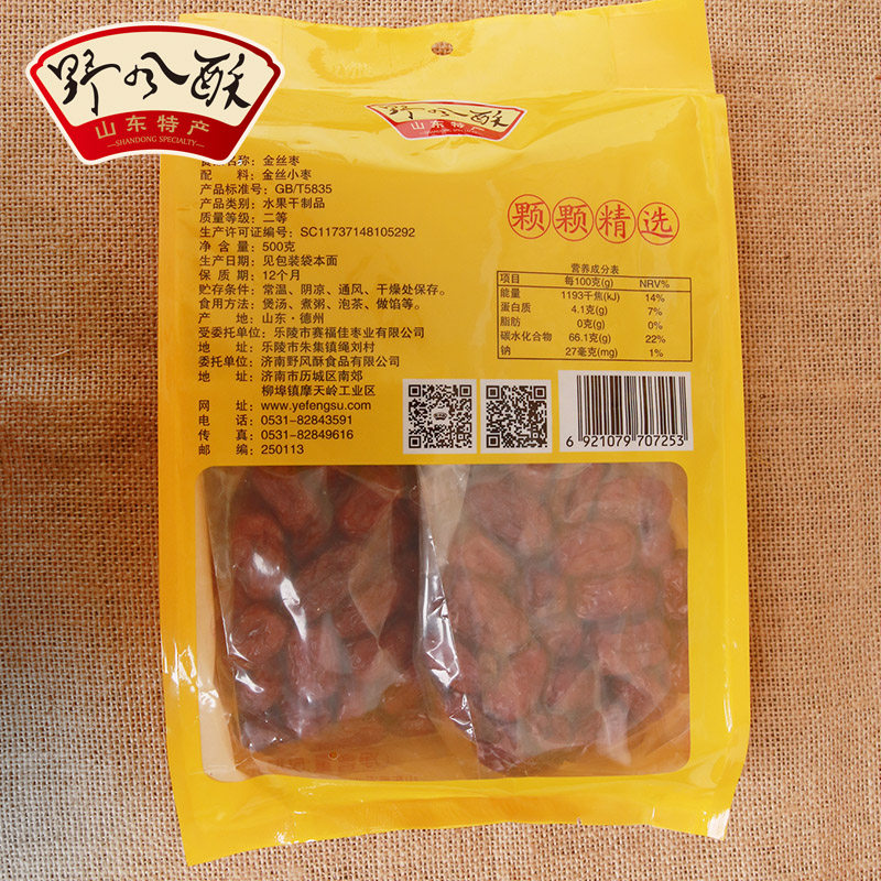 Wild wind crisp Shandong specialty Leling Golden Silk small jujube 500gX2 bags of small red jujube porridge soup tea snacks
