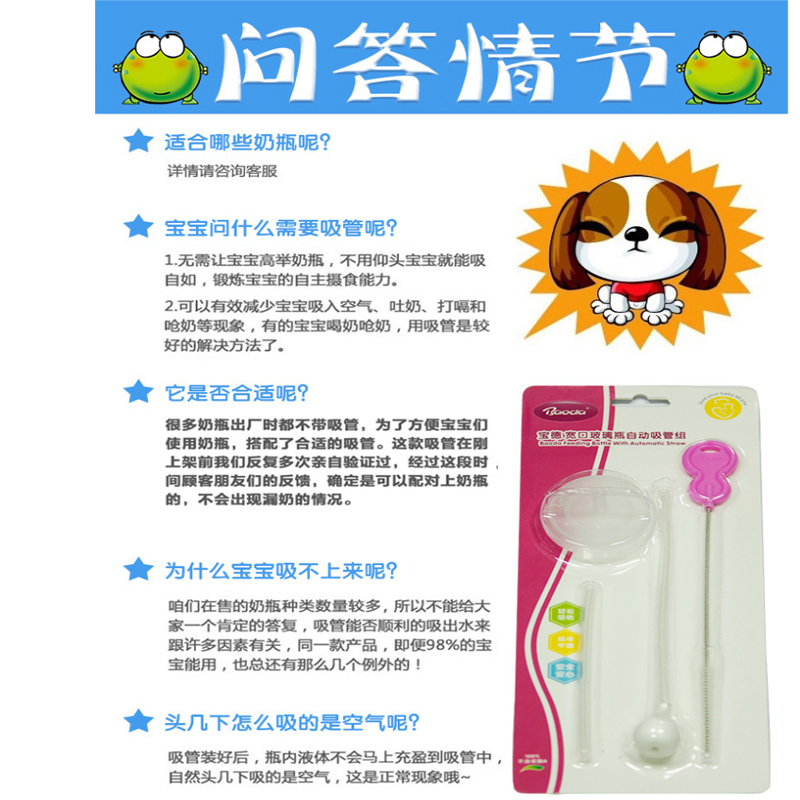 Baode baby products wide-mouth feeding bottle accessories automatic straw set (special for Baode wide mouth)