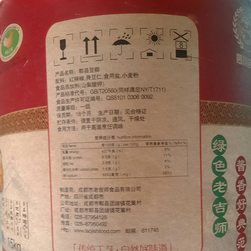 Sichuan specialty Laojishi round barrel douban three-year dark sauce fragrant model Pixian douban sauce 15kg (old hot pot