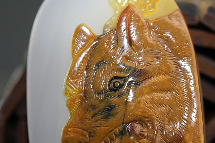 Boutique natural horse stock ice seed jade medullary agate Team Head Wolf Men's list Necklace Master Engraving Pendant