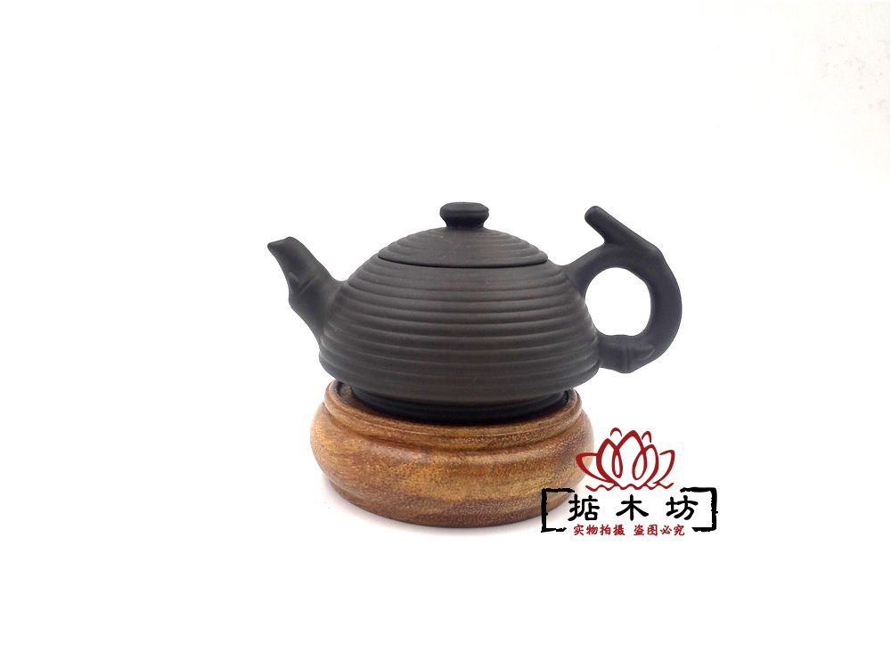 Round solid wood carving base of redwood retro crafts decorated jade chic teapot teapot base frame