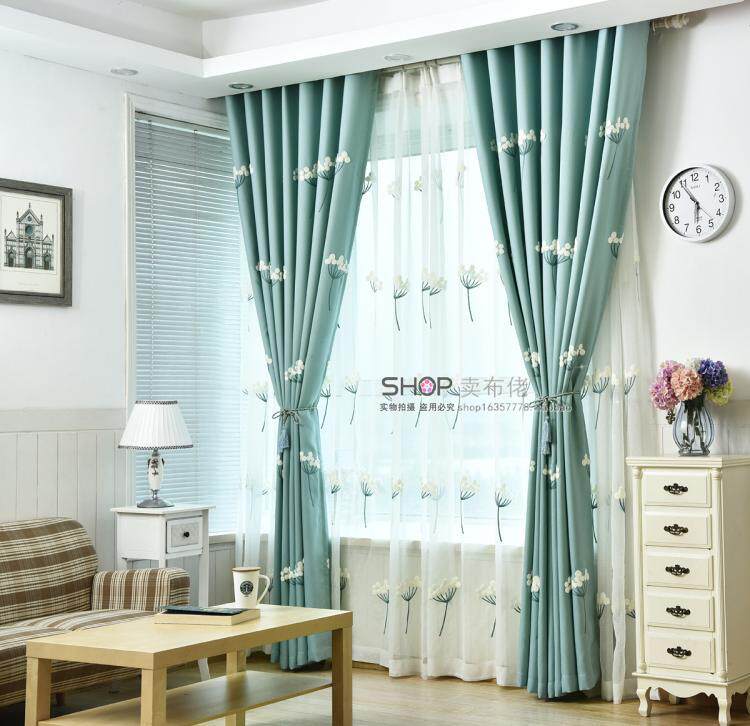 Field Garden Fresh Bedroom Living Room Embroidered Dandelion Cotton Linen Blue Pink Shade Window Fabric Material Wholesale