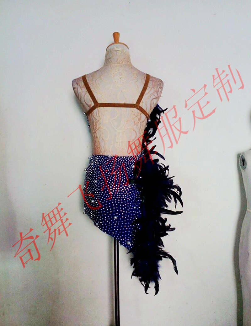 The new cha-cha performance costume feather pearl plus diamond professional latin dance costume customization