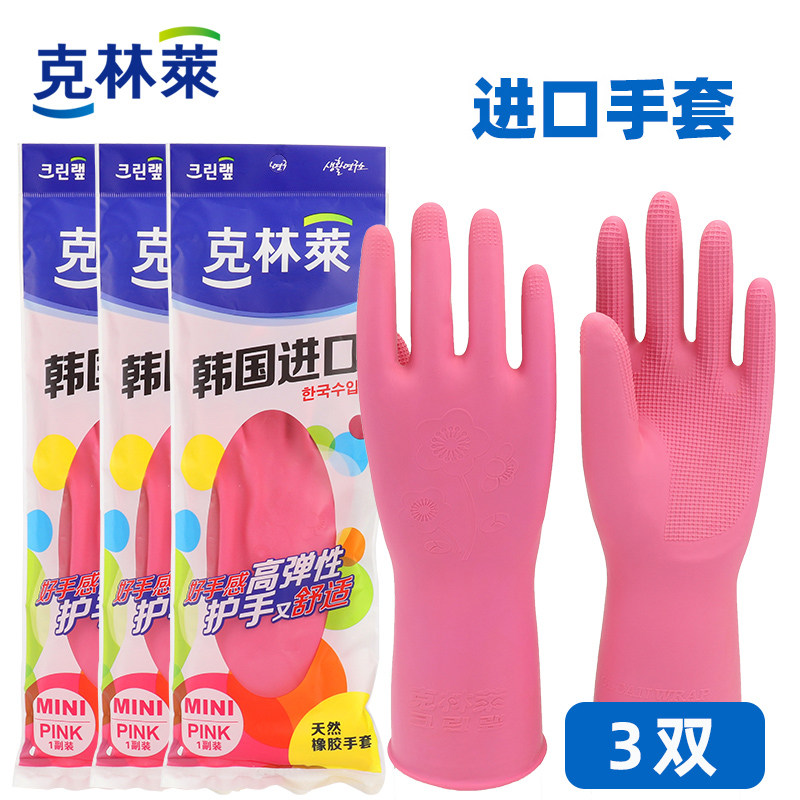 Klinley Korea Vietnam imported housework gloves extended and thickened kitchen cleaning durable dishwashing 3 pairs