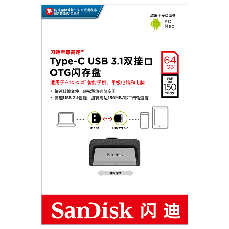 SanDisk phone with body disc 64g high speed mobile phone computer Dual-purpose disc type-cUSB with body disc usb3 1 metal double connector