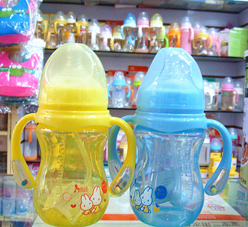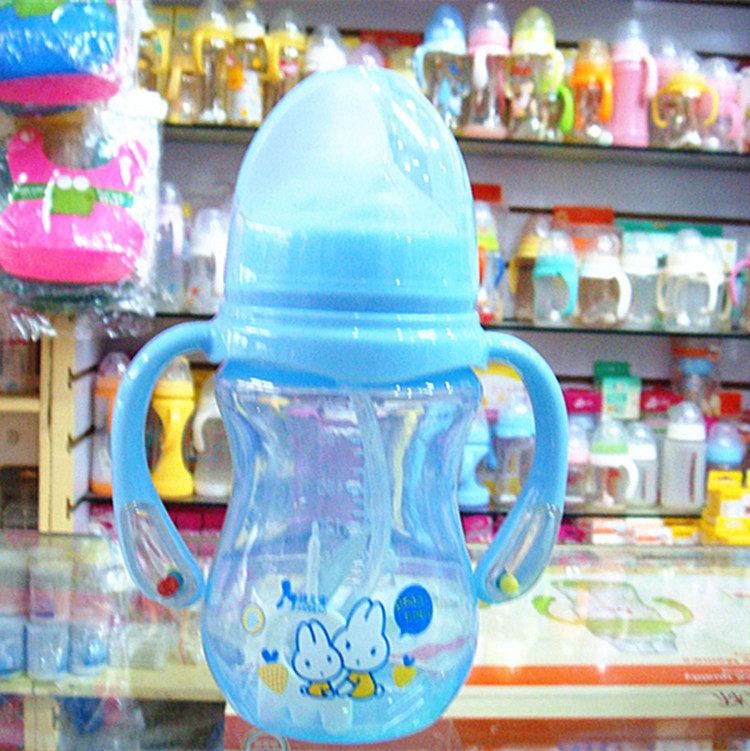 Children's milk bottle 210ML 270ML bell colorful wide mouth with handle with straw PP milk bottle