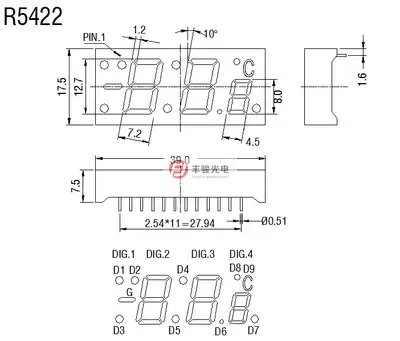 F5422AH 5422BH Gongyang red band temperature display 0 54 temperature display 5422 glow tube