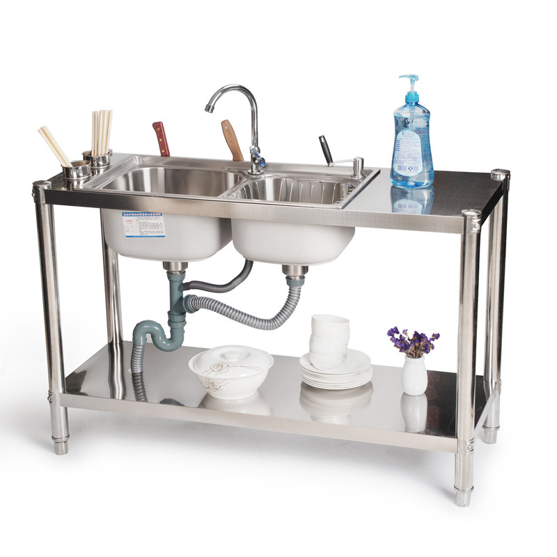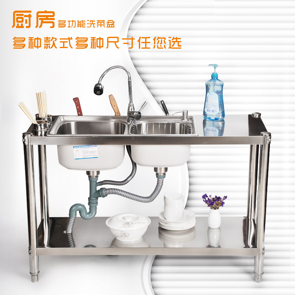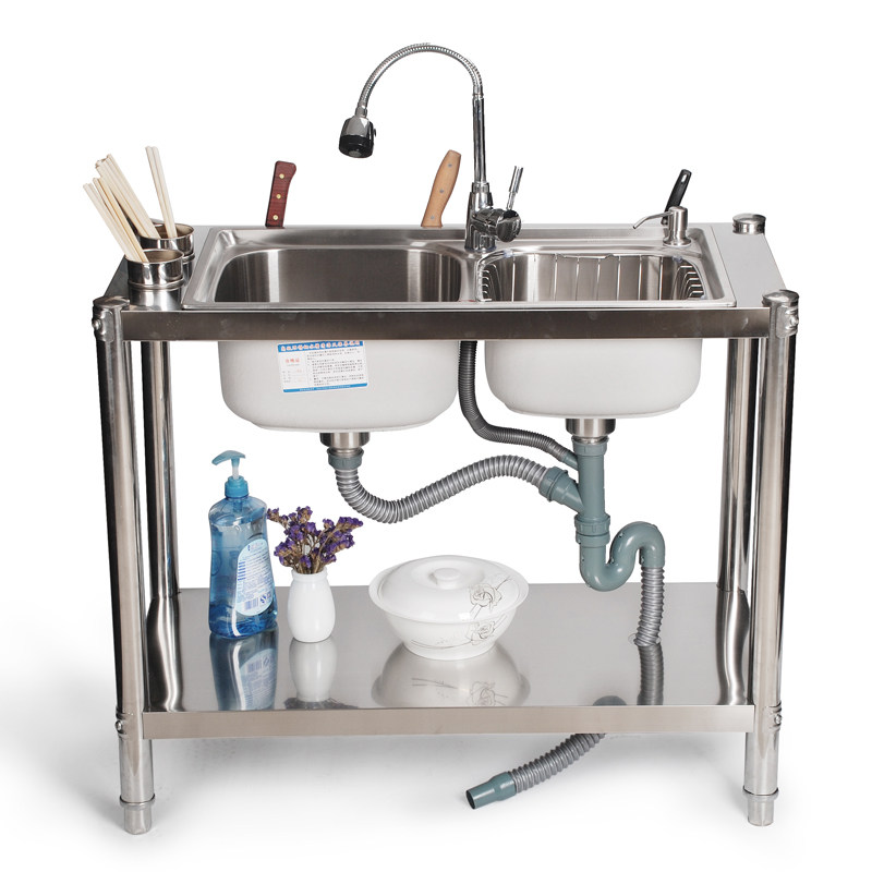 Kitchen Thickened Stainless Steel Sink Double Sink Bracket Terrace Face Wash Basin Dishwashing pool with frame with chopstick cage knife holder