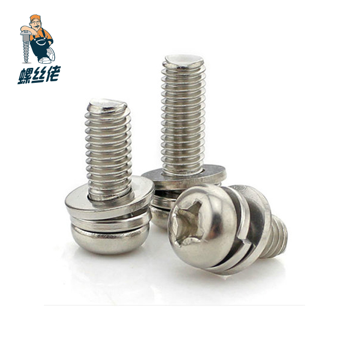 304 stainless steel cross round head with pad three combination screws Pan head three combination machine screws M3M4M5M6