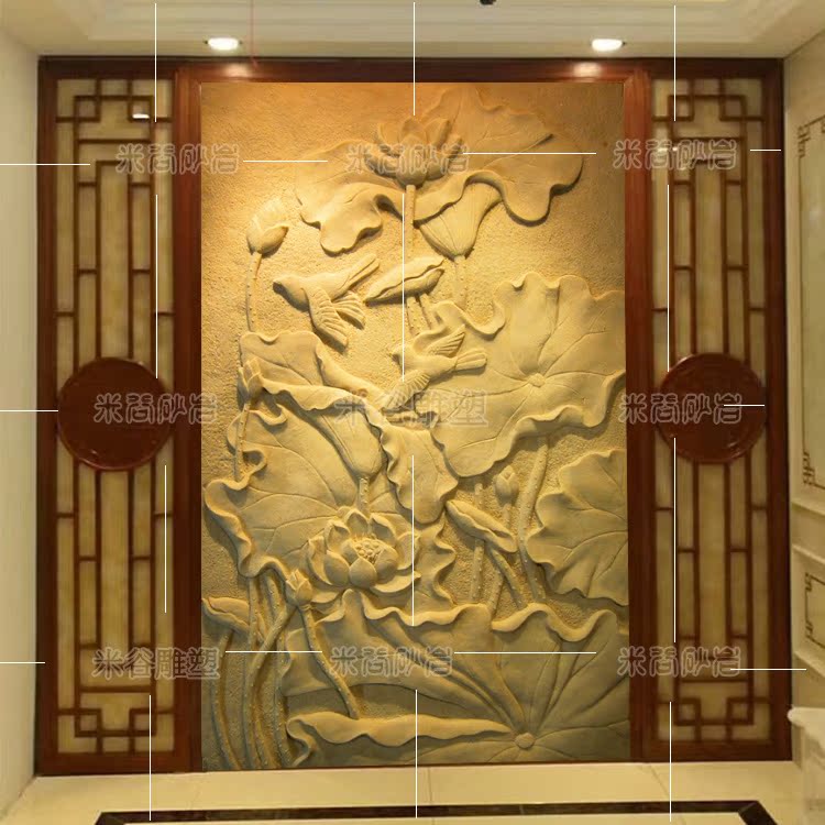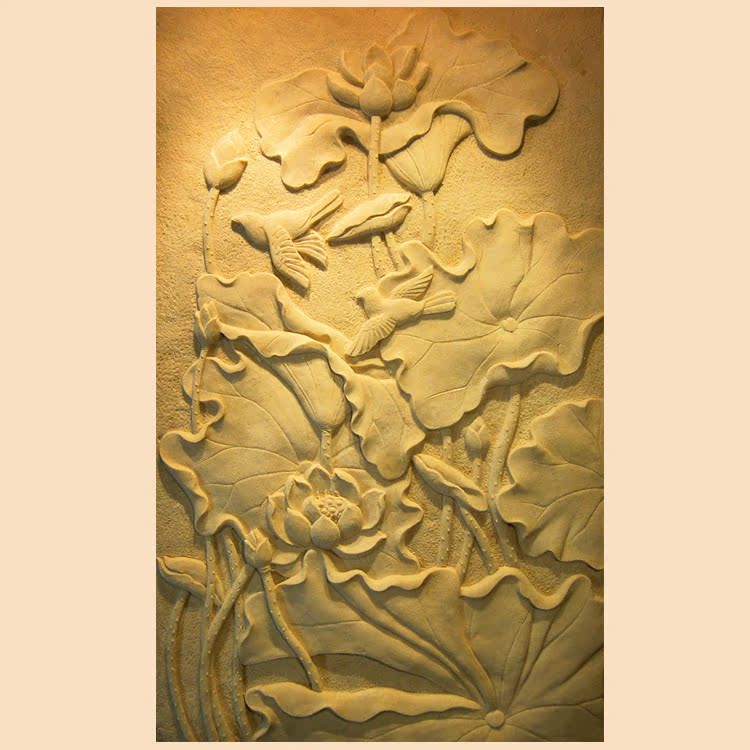 Rice Valley Sandstone Entrance Backwall Chinese Villa Exterior Wall Decoration Sand Rock Relief Lotus Grass Carp Lotus Mural