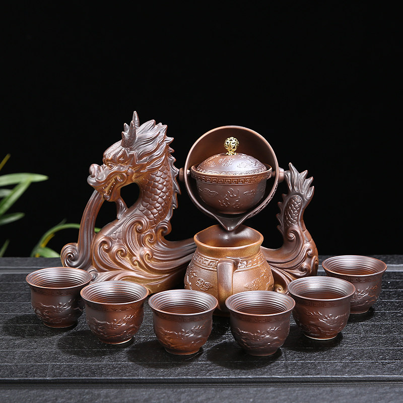 Tea set Wood burning antique stone mill Semi-automatic Kung Fu tea set Creative ceramic anti-hot lazy tea pot