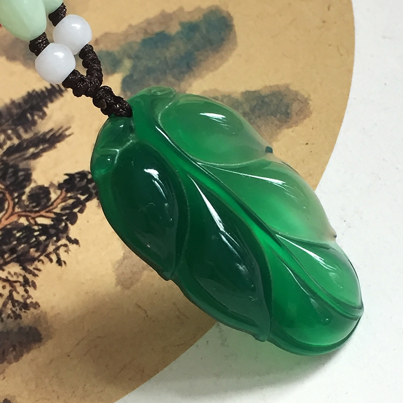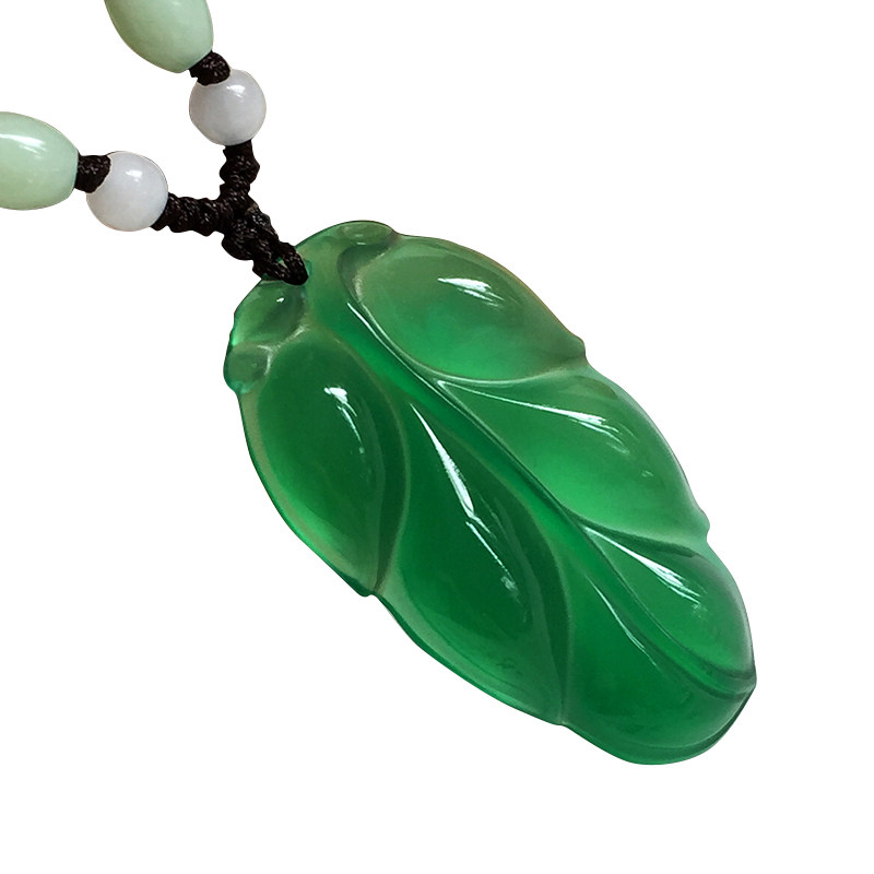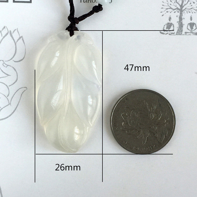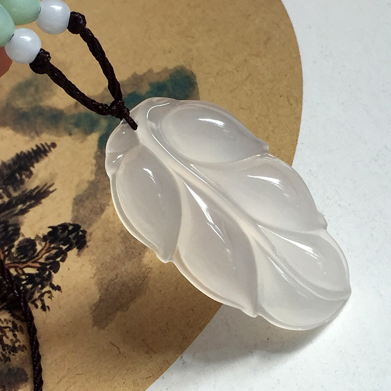 Natural white chalcedony leaf pendant Gold branch jade leaf necklace pendant high-grade men and women jade pendant gift jewelry