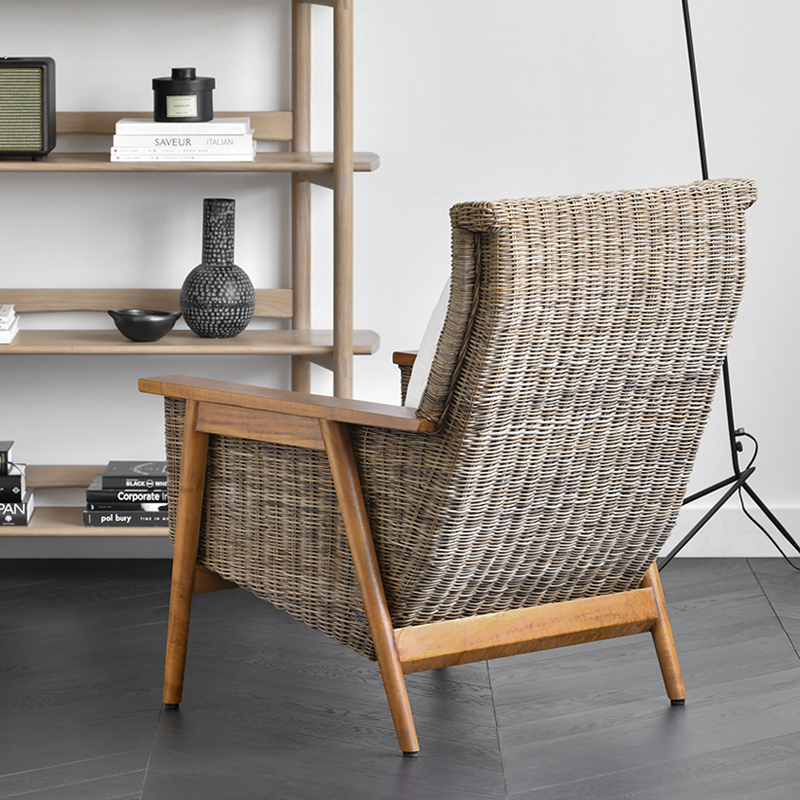 JOLOR Nordic Simple Modern Leisure Virgin chair indoor living room Natural vine furniture solo wooden sofa