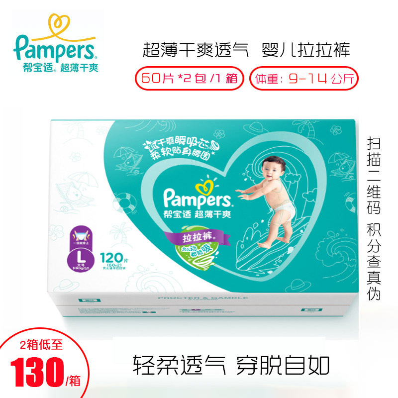 Pampers pull pants large L120 pieces of diapers Ultra-thin dry breathable men's and women's baby diapers toddler pants