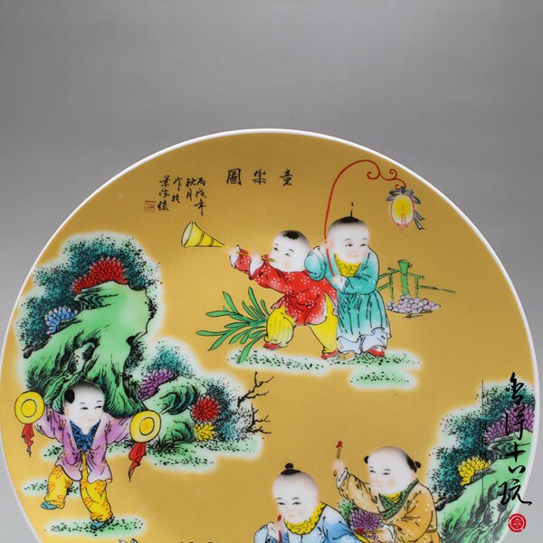 Imitation ancient ceramic ware yellow Tong Leu porcelain disc bogus rack living room adornment 20CM sitting disc hanging disc swinging disc