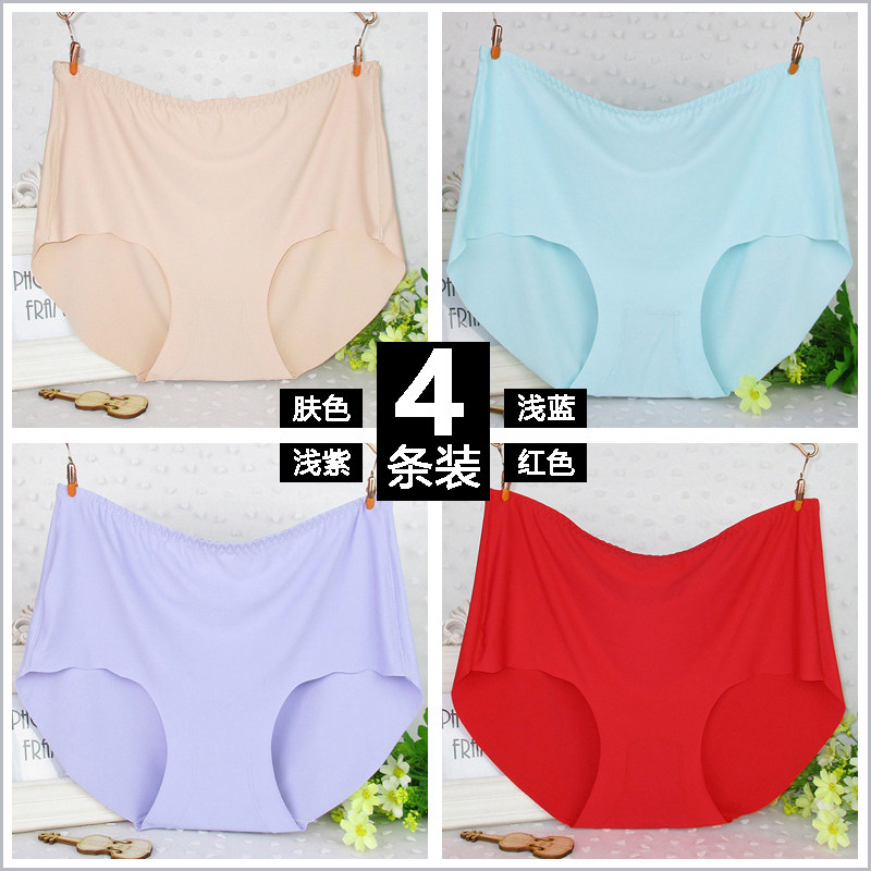4 pieces of ice silk seamless ladies plus fat plus size underwear women 200kg cotton crotch bottoming briefs
