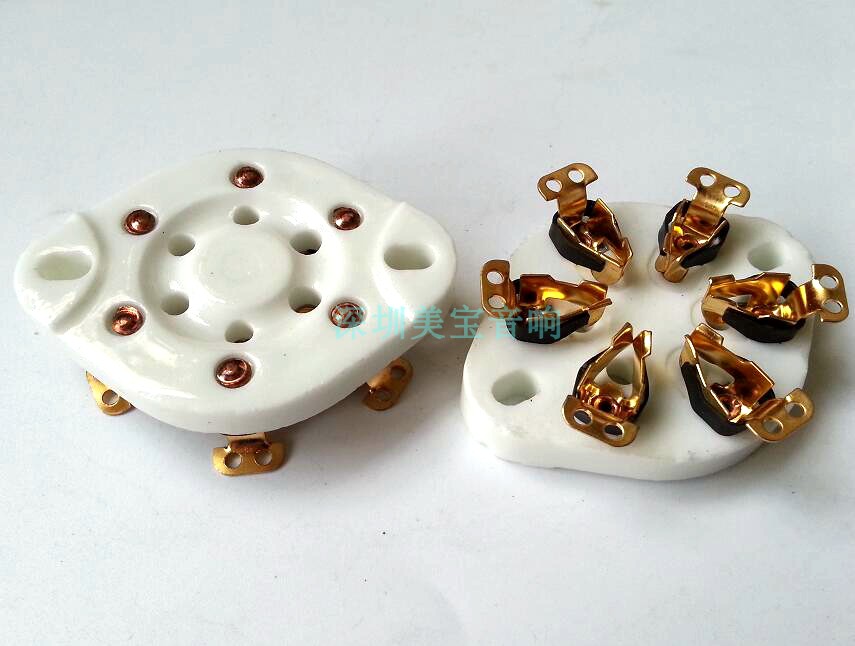 Flat 6-foot ceramic vacuum tube seat GZC6-1-G silver-plated gold-plated feet suitable for VT57 VT58 WE310