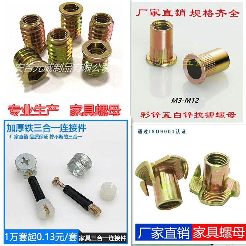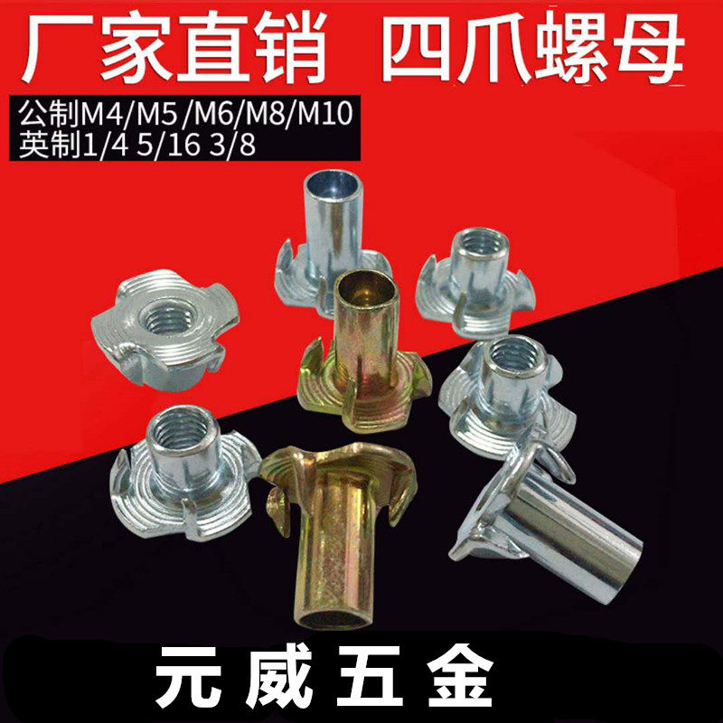 Cold heading furniture screws pre-embedded thick claw nail M8 Cartight bolt Four-angle rocap Four-grip four-claw nut locking device