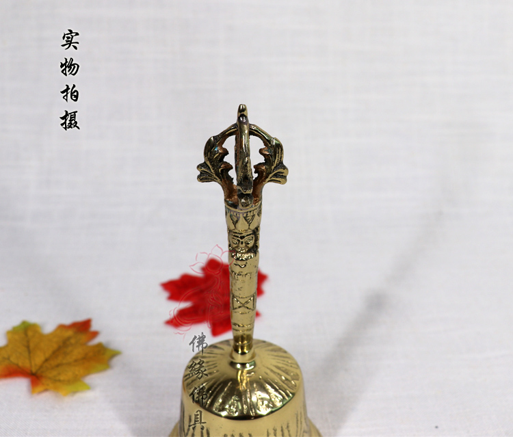 Buddhist Taoist instrument supplies Taiwan origin Pure Copper Buddha bell Bell Hand rattle Cross Copper bell Dharma bell