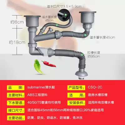 Submarine vegetable wash basin sewer kitchen single sink double sink drain pipe deodorant anti-blocking sink sink water drain accessories