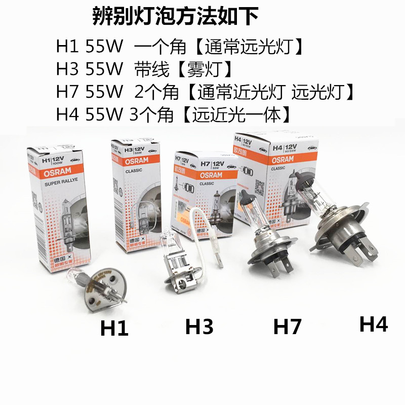 OSRAM H7 low light single price Osram H4 far and near one single price Osram H1 high light single price Osram H3 fog light single price