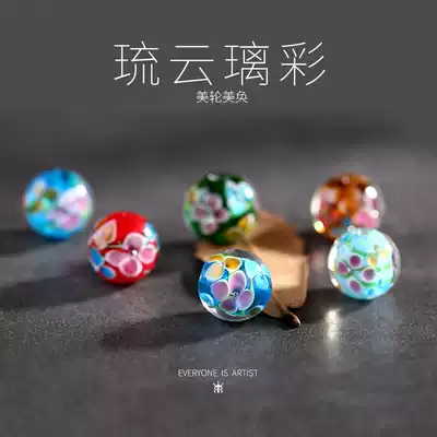 Colored plum petals, colored glaze, scattered beads, DIY handmade hand-made necklace jewelry accessories antique material
