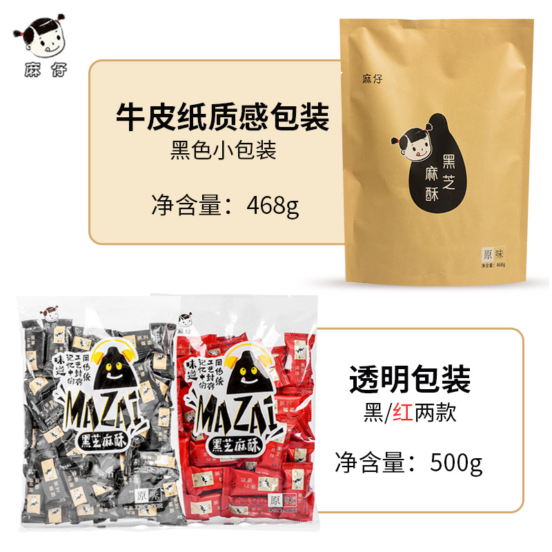 Black Sesame Crisp-Kraft paper bag 468g (black small package) Black Sesame Crisp-transparent bag 500g (black small package) Black sesame Crisp-transparent bag 500g (red small package)