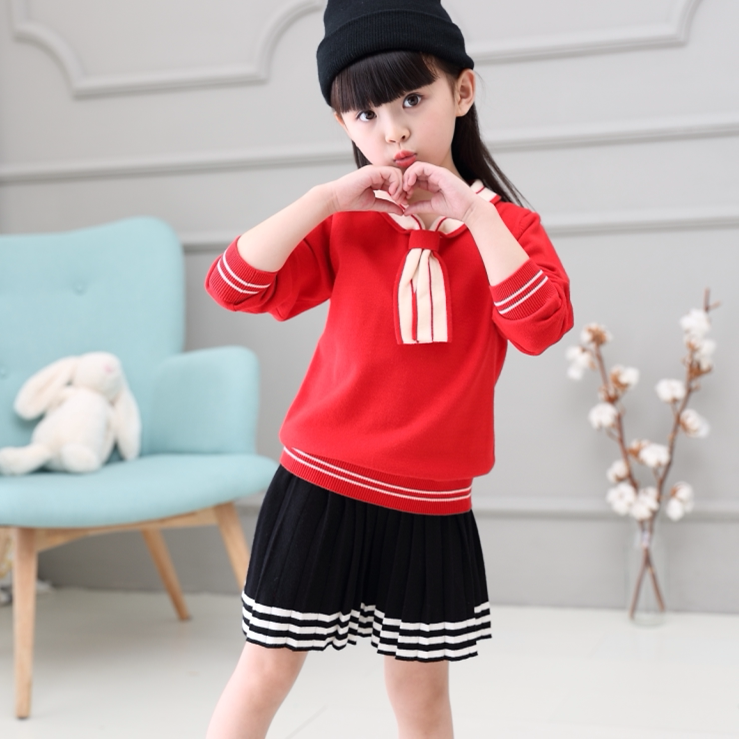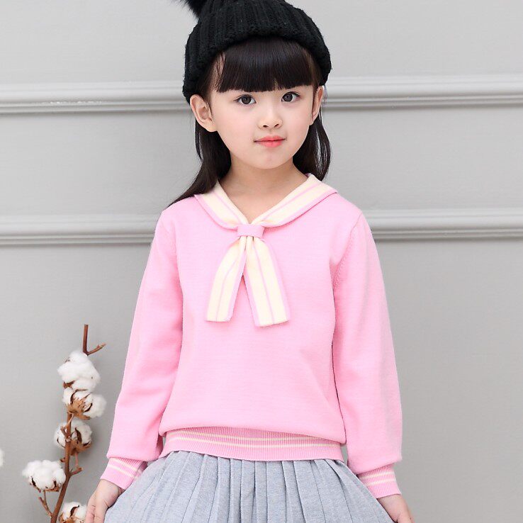 Girls' Knitwear Pullover Round Neck Sweater Middle-aged Children's Long Sleeve Loose Short Autumn and Winter Bottoming Coat