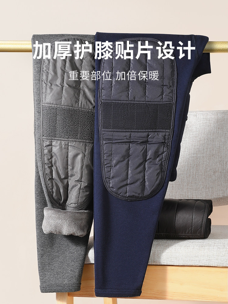 Septwolves Warm Pants Men's Winter Underwear Knee Plus Fleece Thickened Long Johns Men's Fleece Pants Down Belt Knee Pad Wool Pants