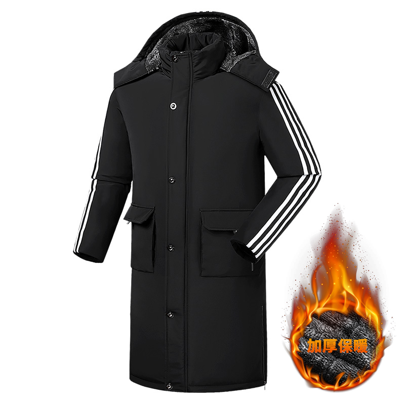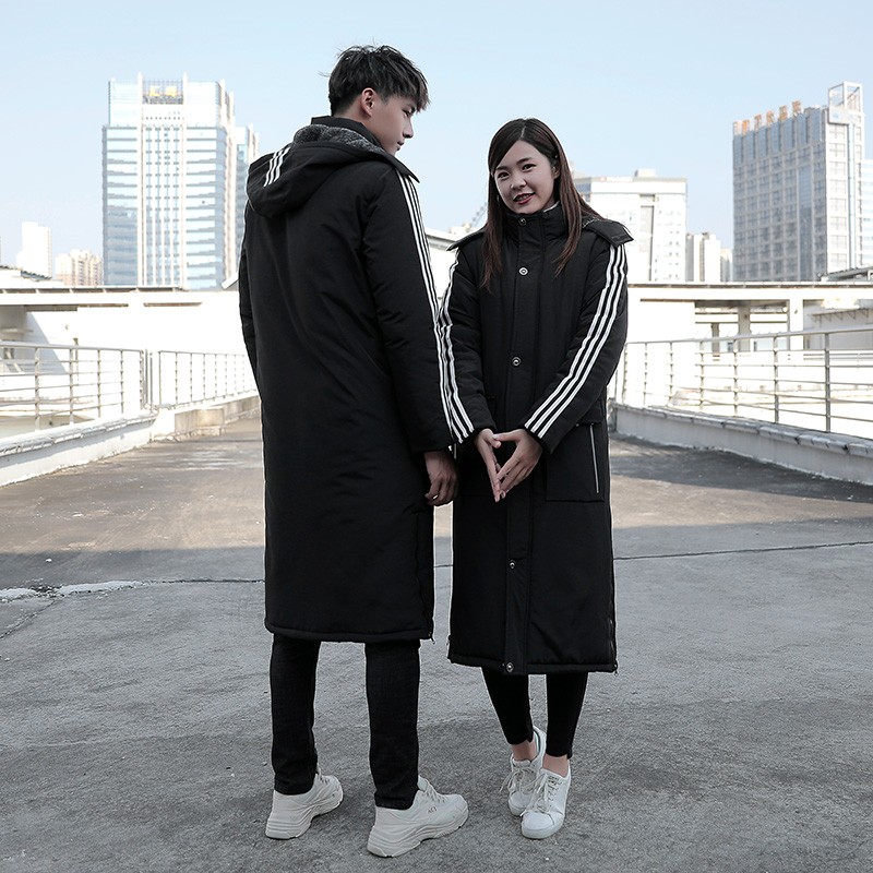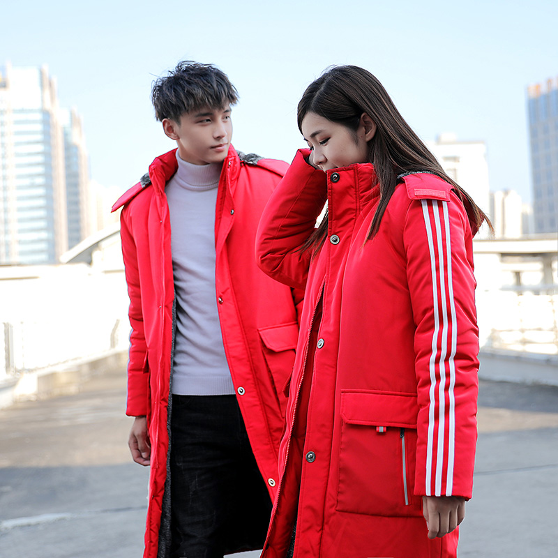Sports cotton coat men's long version over the knee plus velvet cotton coat women's national team sports academy art examination dance winter training cotton clothes