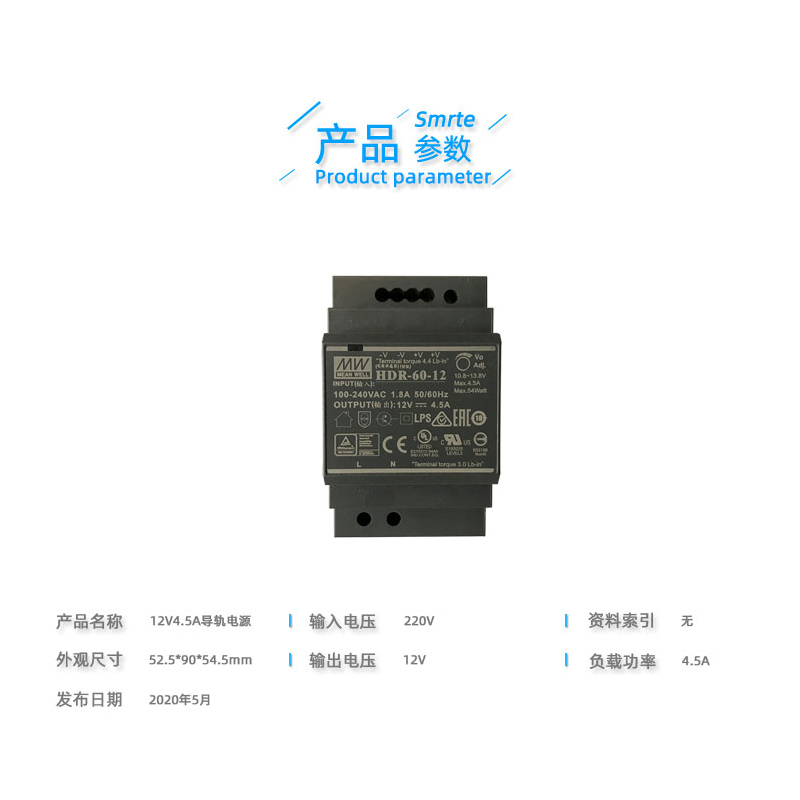 Lite Intelligent Standard U Rail Mount 12V4.5A DC Switching Power Supply Rail Power Supply Centralized Control