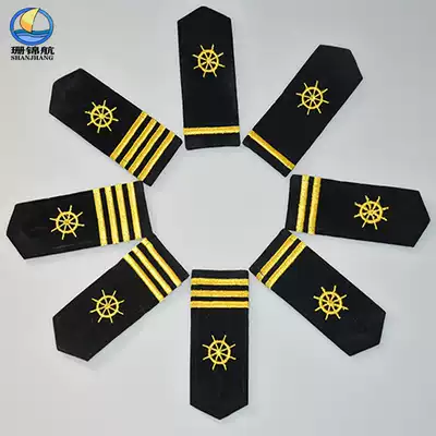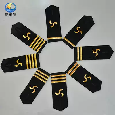 Brocade seafarer epaulette Crew sea anchor propeller five-pointed star rudder turbine Black gold thread embroidered hard epaulette