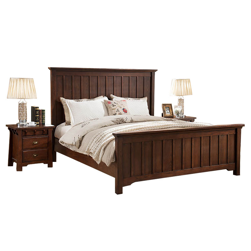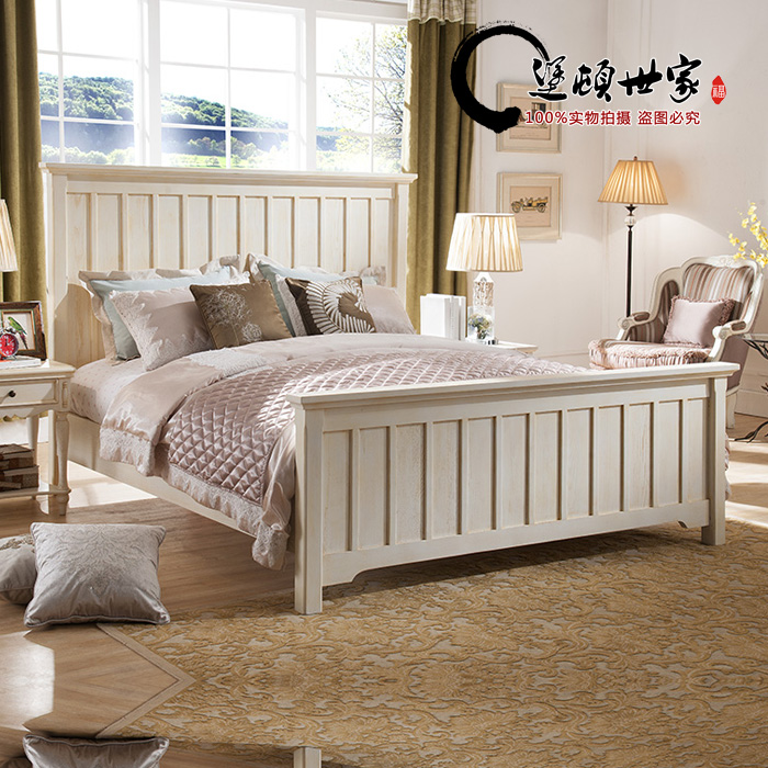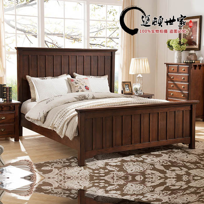 American country garden furniture simple small apartment Fraxinus mandshurica open paint solid wood pillar double bed wedding bed