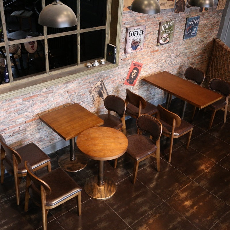 Retro Coffee Hall Table And Chairs West Dining Room Tea Restaurant Solid Wood Table And Chairs Milk Tea Shop Table And Chairs Bar Table And Chairs Combination