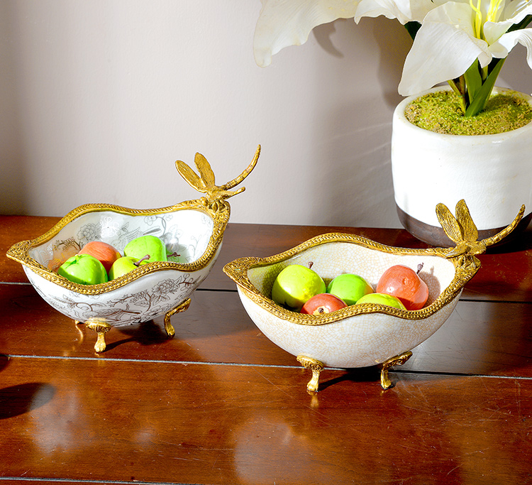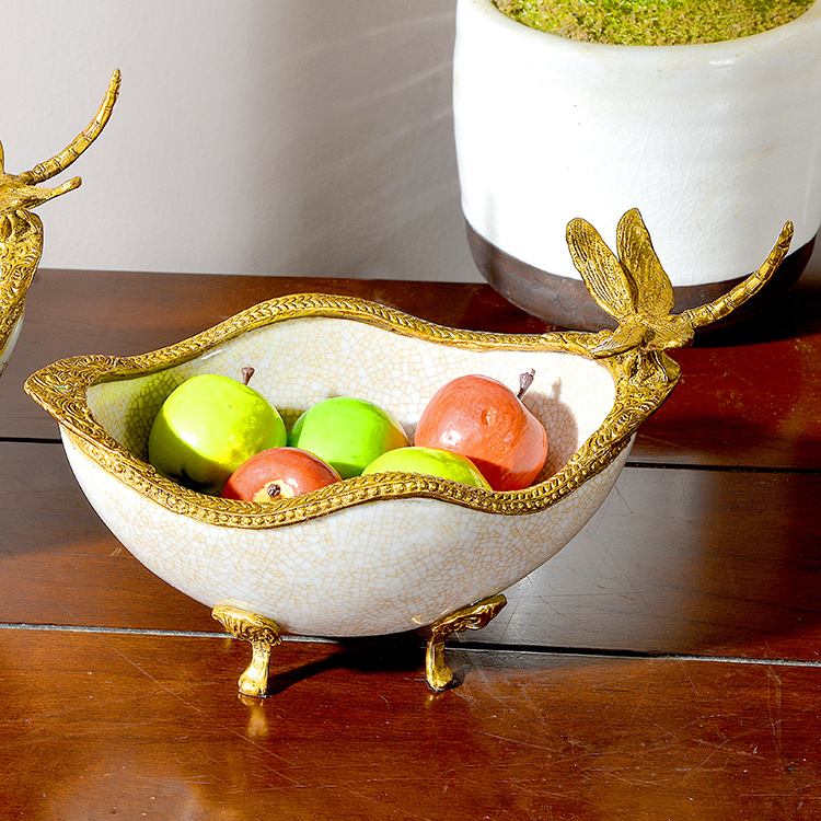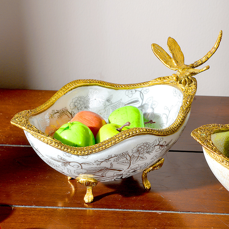American extravagant soft-loaded ceramic inlaid copper candy small fruit pan autorique tea table living room home fruit tray hem