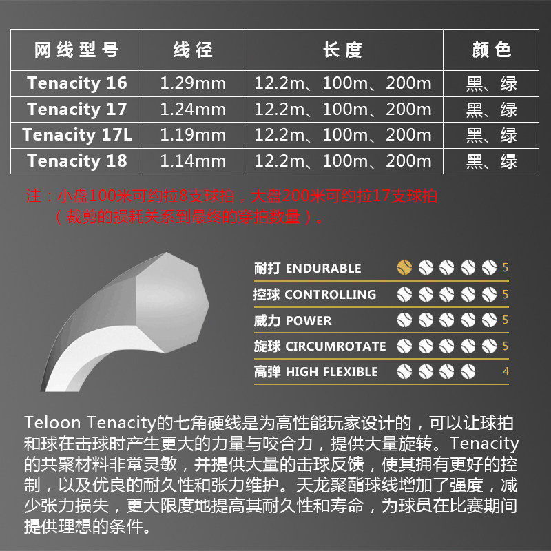 Sky Dragon Tennis Line Tenacity 16 Black Single Root Sky Dragon Tennis Line Tenacity 16 Fluorescent Green Single Root Dragon Tennis Line Tenacity