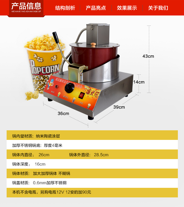 New Single Pot Popcorn Machine Gas Electric Popcorn Machine Popcorn Machine Popcorn Automatic Popcorn Machine Commercial Use