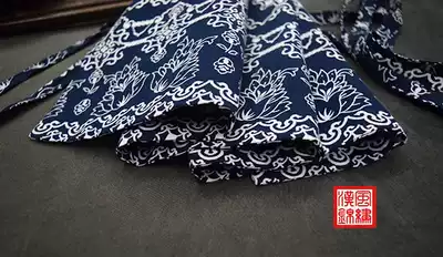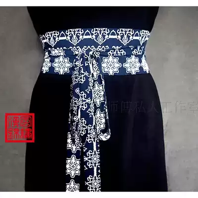 Original handmade belt thin lining all-match Hanfu belt pure cotton waist cover double-sided can be worn blue cabbage printed hat